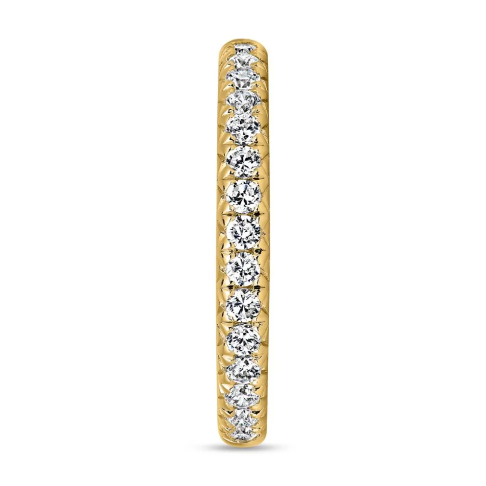 Wundervoll – das ist dieser halbe Ewigkeitsring für Damen. Wahlweise aus 585er oder 750er Gelbgold gefertigt, überzeugt er mit seinen 15 verschieden großen lab-grown Brillanten auf der oberen Hälfte der Ringschiene. Diese bezaubern mit insgesamt ca. 0,31 ct. und verfügen über die Reinheit VVS-VS sowie die Farbe D-F. Mittels innovativem Verfahren im Labor hergestellt, bestehen die Diamanten aus 100 % Kohlenstoff und weisen die gleiche Härte und das gleiche Funkeln auf wie natürlich vorkommende Diamanten. Über das Drop-down-Menü kann die gewünschte Legierung ausgewählt werden. Ebenfalls kann die Innenseite mit einer Legierung versehen werden.