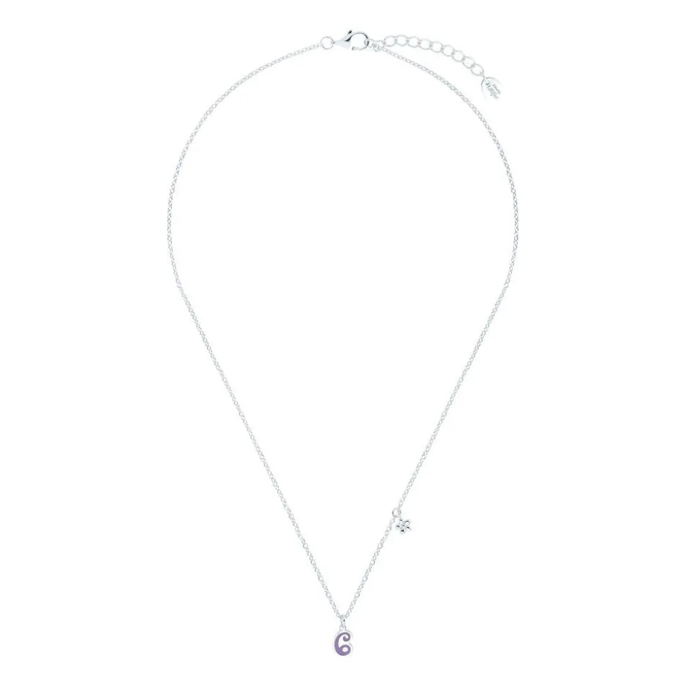 Ein niedliches Geburtstagsgeschenk – das ist diese Kinderkette aus rhodiniertem Sterlingsilber. Blickfang ist der Anhänger in Form der Zahl 6, welche mit fliederfarbener Emaille akzentuiert ist. Die Kette besitzt einen Karabinerverschluss und kann in der Länge verstellt werden.