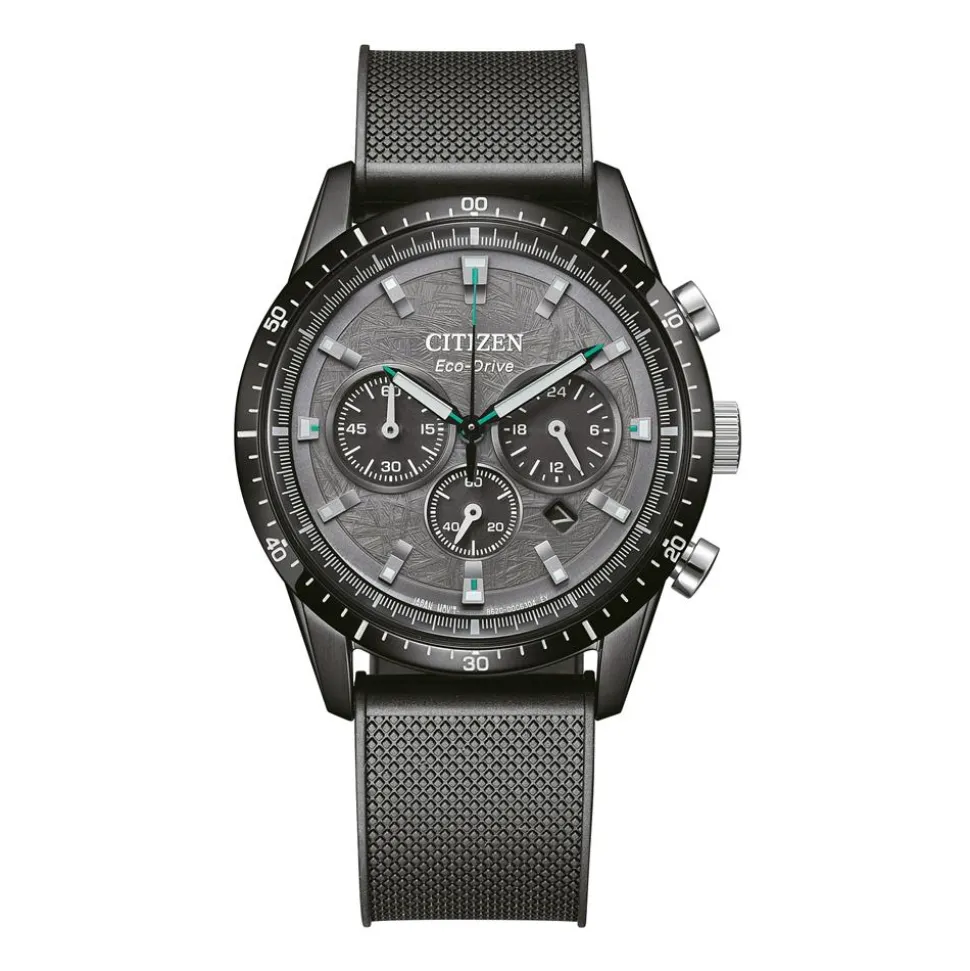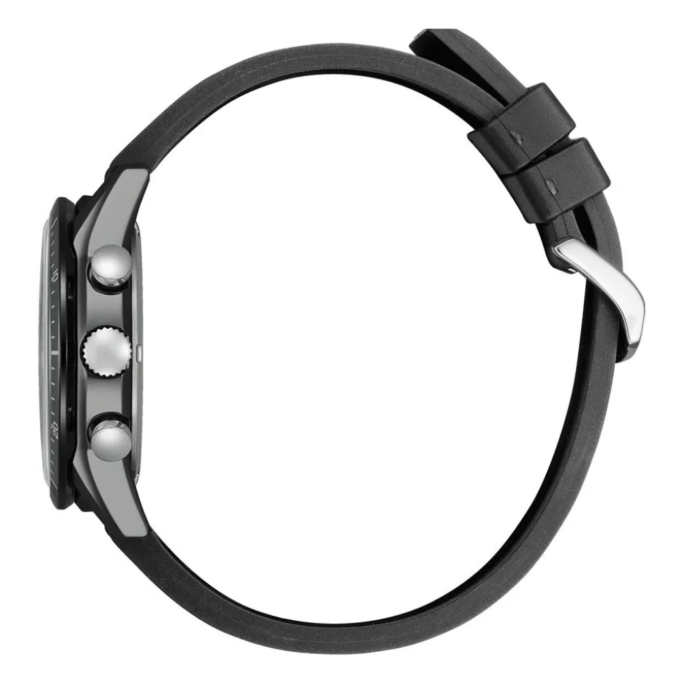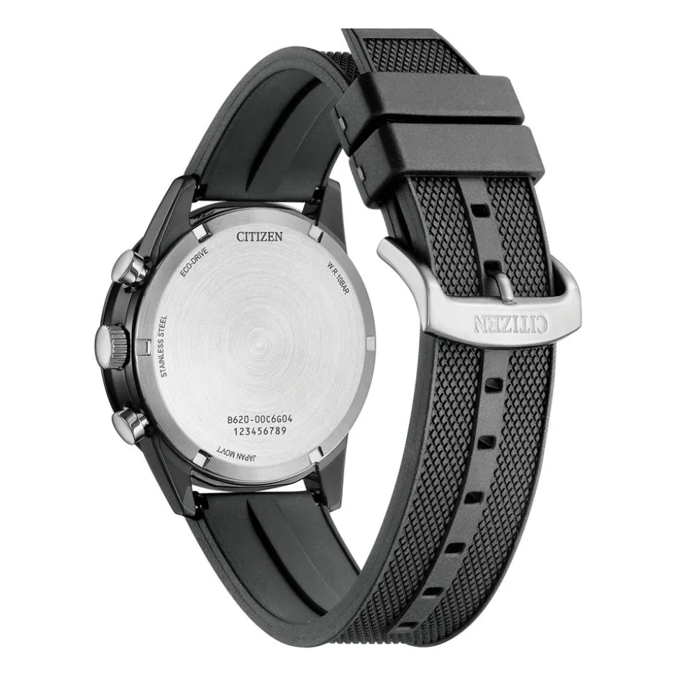 Funktional – das ist diese solarbetriebene Armbanduhr für Herren. Sie besteht aus schwarzem IP-beschichtetem Edelstahl und wird von einem schwarzen Gummiband mit Dornschließe gehalten. Das strukturierte, anthrazitfarbene Zifferblatt verfügt über Strichindizes, eine Datums- und 24-Stundenanzeige sowie eine Stoppfunktion. Es wird von kratzfestem Kristallglas geschützt. Auf der schwarzen Lünette befindet sich ein Tachymeter. Die Gangreserve der Uhr beträgt 270 Tage. Zudem ist sie bis zu einem Druck von 10 bar wasserfest.