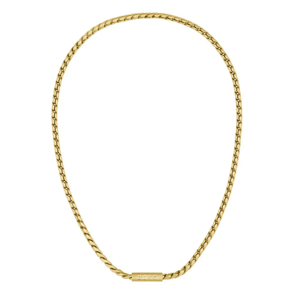 Ein absoluter Eyecatcher – das ist diese Kette für Herren. Sie besteht aus Edelstahl, der vergoldet wurde und weist fantasievoll gestaltete Kettenglieder auf. Das besondere Etwas bietet der Magnetverschluss, der vorne an der Kette zu finden ist. Dieser ist mattiert und zeigt den Markennamen.