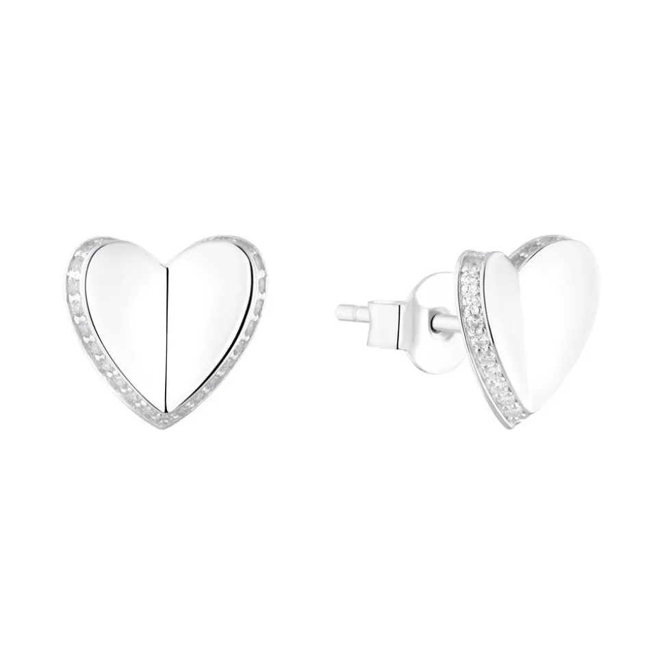 Zum Verlieben – das sind diese Damenohrstecker aus rhodiniertem Sterlingsilber. Beide Ohrstecker besitzen eine Herzform und sind in der Mitte leicht zusammengefaltet. An den Außenrändern der Ohrstecker befinden sich funkelnde Zirkoniasteine.