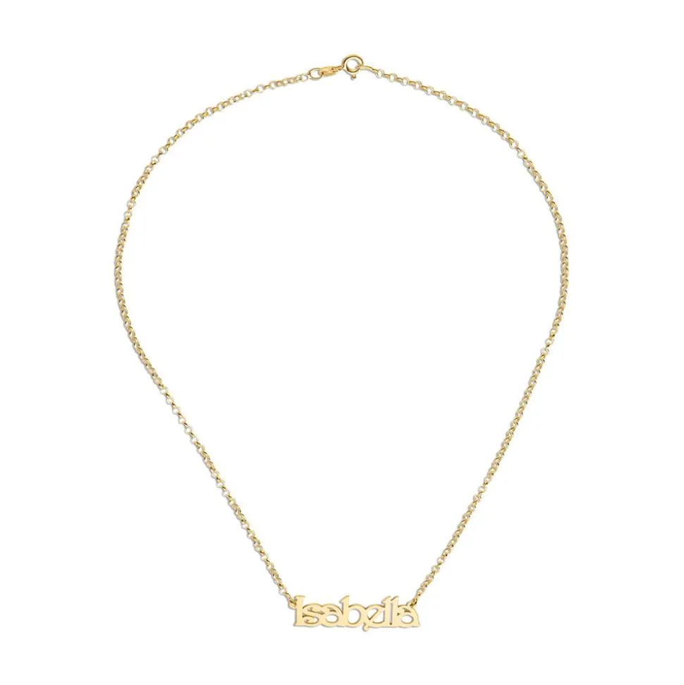 Ein stylisher Eyecatcher – das ist diese Namenskette aus 925er Silber, welches mit einer IP-Vergoldung veredelt ist. Bei ihr kann nicht nur der Name/Begriff, sondern auch die Kettenart und -länge gewählt werden: