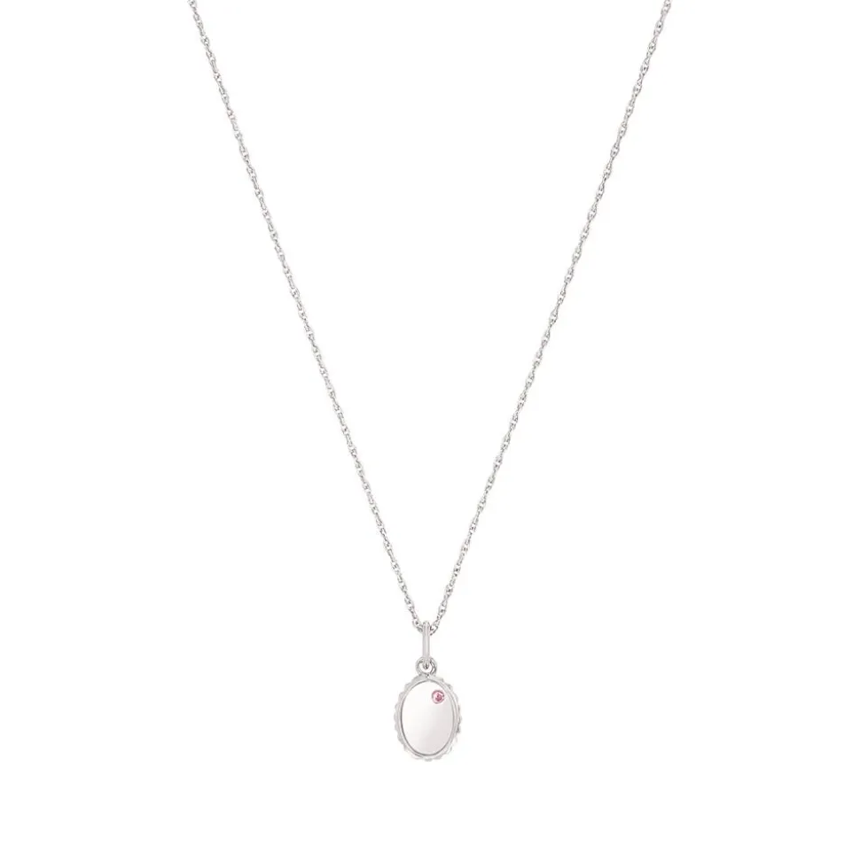Zeitlos – das ist diese Kinderkette aus rhodiniertem Sterlingsilber. Der ovale Anhänger ist auf der Vorderseite mit einem rosafarbenen Zirkonia (synth.) besetzt und kann mit einem Zeichen graviert werden. Die Lasergravur wird mittels eines Laserstrahls in das Material gebrannt. Dadurch ist die Schriftfarbe dunkel und kann mit der Zeit verblassen. Die Größe und Position der Gravur wird je nach Gravurfläche von unseren erfahrenen Graveuren angepasst. Artikel mit einer Gravur sind vom Umtausch ausgeschlossen. Die Halskette kann in der Länge verstellt werden und besitzt einen Karabinerverschluss.