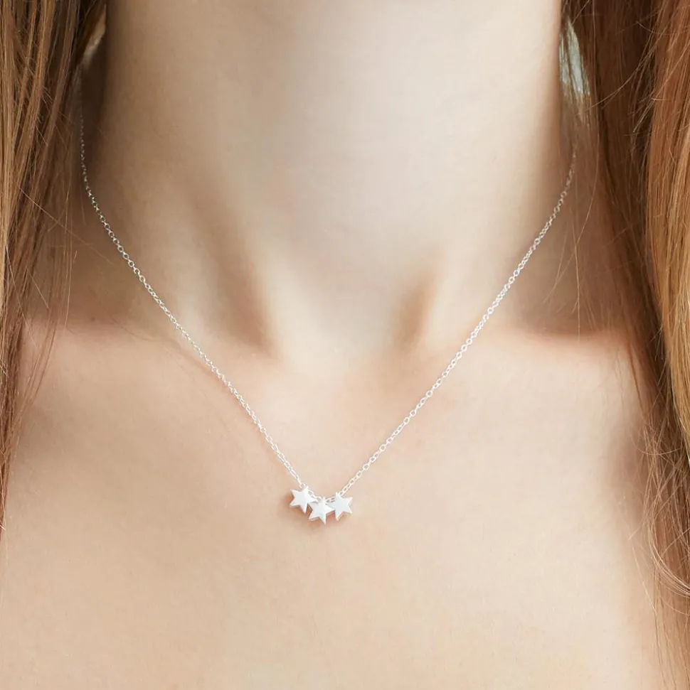 Diese filigrane Kette begeistert mit ihrem absolut bezaubernden und modernen Design. Sie ist aus 925er Silber gefertigt und wird von 3 Sternen geziert, die mattiert wurden. Die Halskette besitzt einen Federringverschluss und kann durch die Zwischenösen in der Länge verstellt werden.