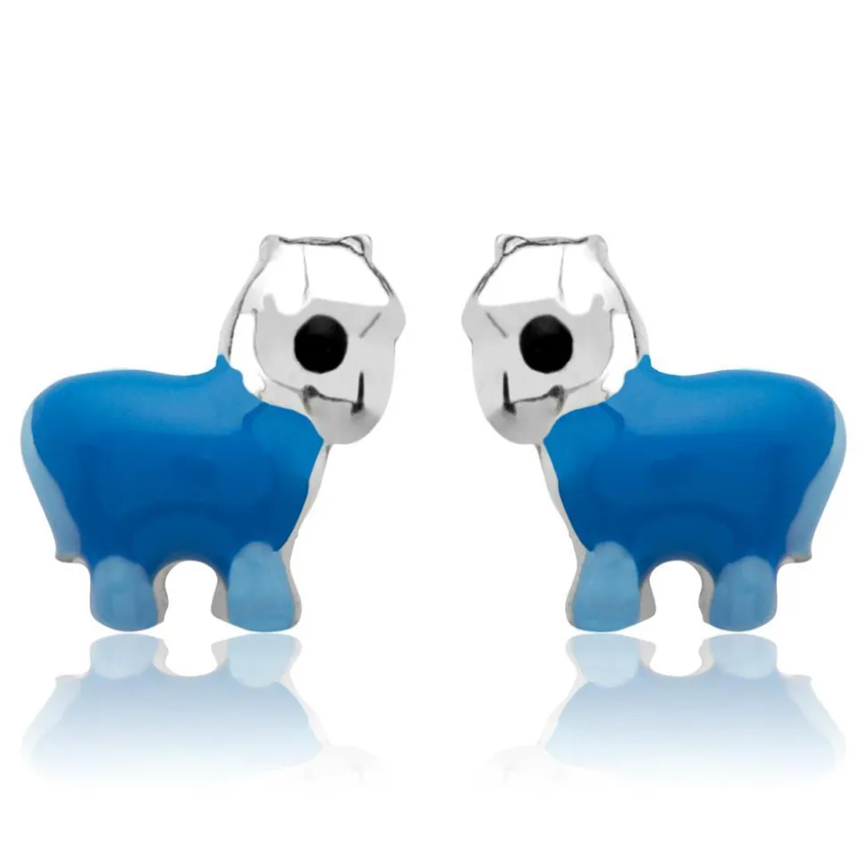 Blaue Kinderohrstecker mit Pferdemotiv. Die Ohrstecker sind aus echtem 925 Sterling Silber.