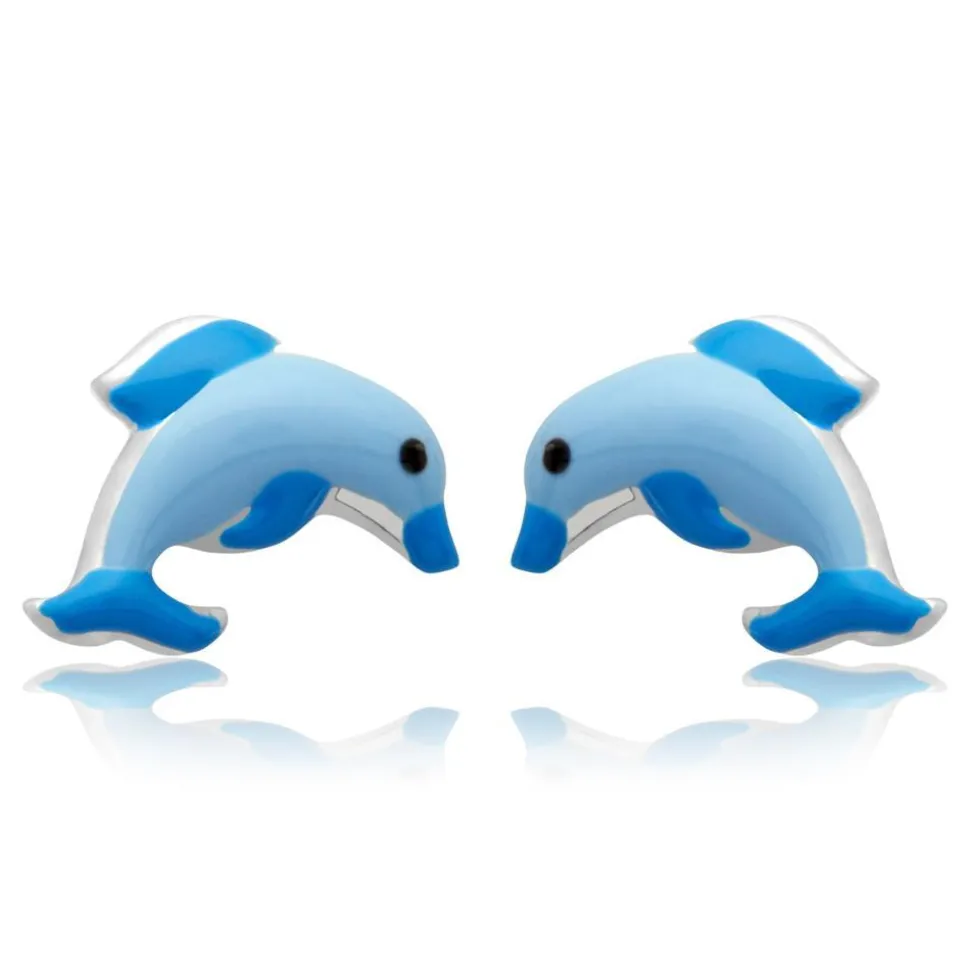 Blaue Kinderohrstecker mit Delfinmotiv. Die Ohrstecker sind aus echtem 925 Sterling Silber.