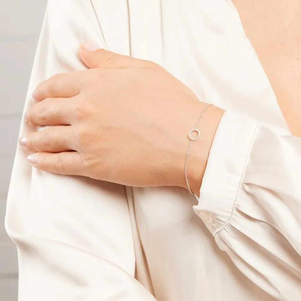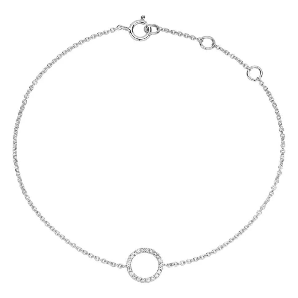 Ein zeitloser Klassiker – das ist dieses Armband aus 585er Weißgold. Zwischen die filigranen Ankerkettenglieder ist ist Kreis eingearbeitet, welcher mit 22 brillantgeschliffenen Diamanten (ca. 0,09 ct.) besetzt ist. Alle verarbeiteten Diamanten sind klassifiziert als Feines Weiß (Top Wesselton) und die Reinheit fällt in die Kategorie SI (small inclusions). Da wir nicht nur auf höchste Qualitätsstandards, sondern auch auf ethische Aspekte achten, stammen all unsere Diamanten ausschließlich aus konfliktfreien Quellen.