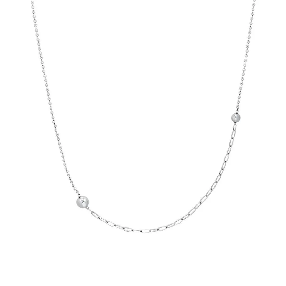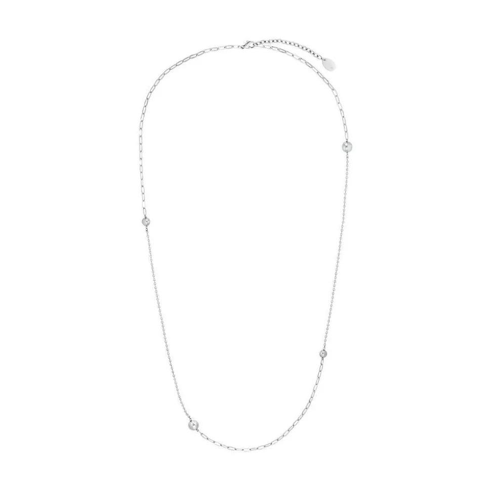 Diese Maxikette ist ein absolut trendiger Eyecatcher! Sie besteht aus Edelstahl und ist aus kleinen Kugeln gefertigt. Diese werden von größeren Kugeln begrenzt und dazwischen befindet sich eine moderne Gliederkette. Die Kette besitzt einen Karabinerverschluss und kann in der Länge angepasst werden.