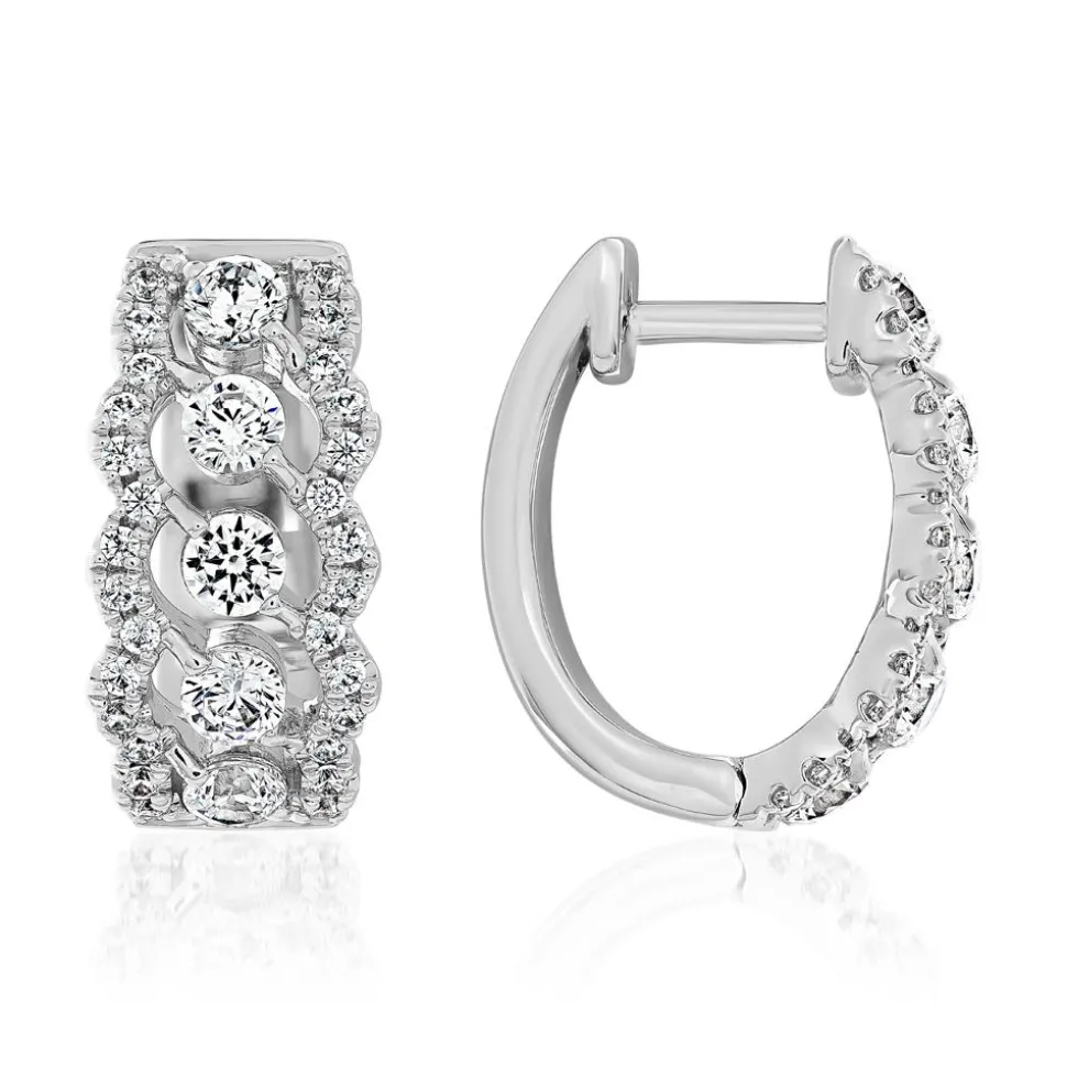 Ein atemberaubendes Funkeln – das versprühen diese Creolen, die wahlweise in 585er oder 750er Weißgold oder 950er Platin bestellt werden können. Die Ohrringe werden von insgesamt 66 brillantgeschliffenen Lab Grown Diamanten (ca. 1,07 ct.; Farbe: DEF; Reinheit: VVS-VS) geziert, wovon 10 mittig sitzen und größer als die anderen sind. Genauso wie natürliche Diamanten verfügen die im Labor produzierten Diamanten über eine überragende Härte, eine hohe Qualität und ein zauberhaftes Funkeln. Der Vorteil solcher Diamanten liegt jedoch in ihrer umweltfreundlicheren Produktion, die keinen Diamantabbau erfordert. Der Ohrschmuck verfügt über ein Brilladia-Zertifikat.