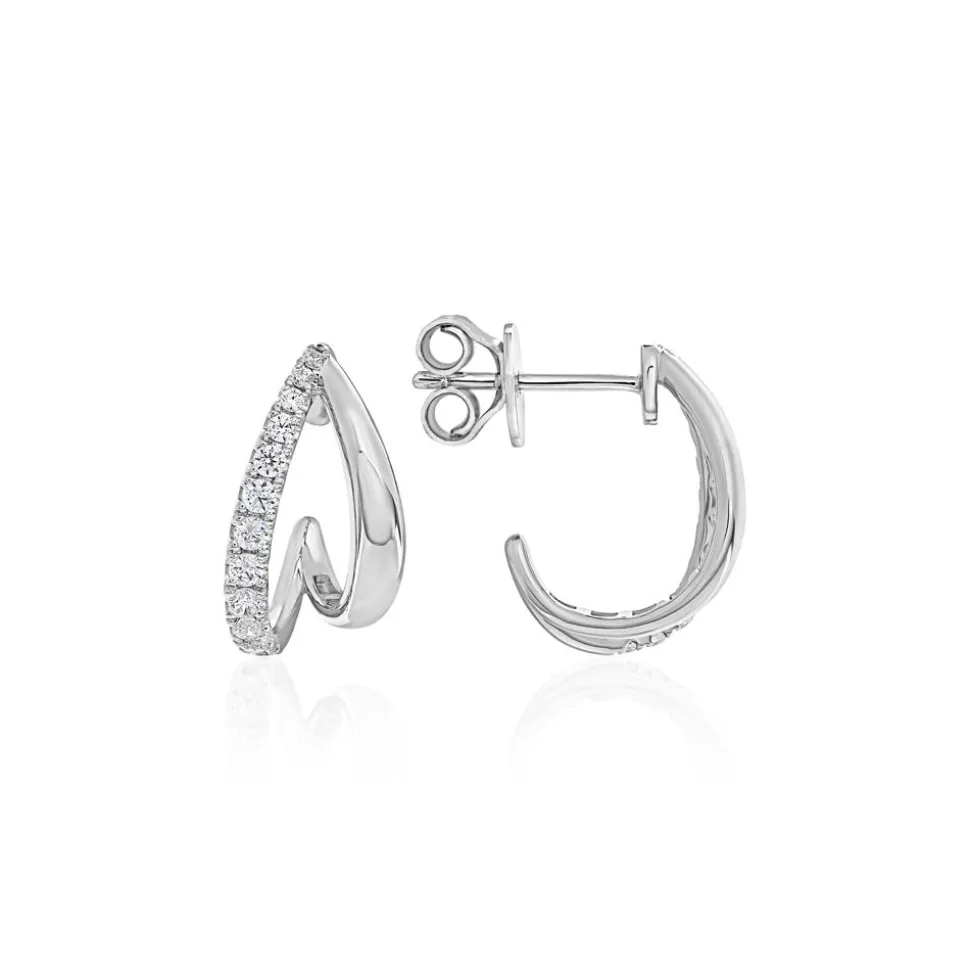 Dieser Ohrschmuck begeistert mit seinem femininem Chic! Die Stecker sind wahlweise aus 585er oder 750er Weißgold oder 950er Platin gefertigt. Bitte die bevorzugte Legierung im Drop-down-Feld auswählen. Jeder Stecker besteht aus zwei geschwungenen Strängen, wovon einer mit laborgezüchteten Brillanten (insgesamt: 24; ca. 0,34 ct.; DEF/VVS-VS) besetzt ist. Diese Diamanten besitzen eine hohe Qualität und die gleiche Härte und das gleiche Feuer wie herkömmliche Diamanten. Im Vergleich zu echten Diamanten entfällt bei der Herstellung im Labor jedoch der Diamantabbau, was die Lab Grown Diamanten zu einer nachhaltigen Alternative machen. Der Ohrschmuck verfügt über ein Brilladia-Zertifikat.
