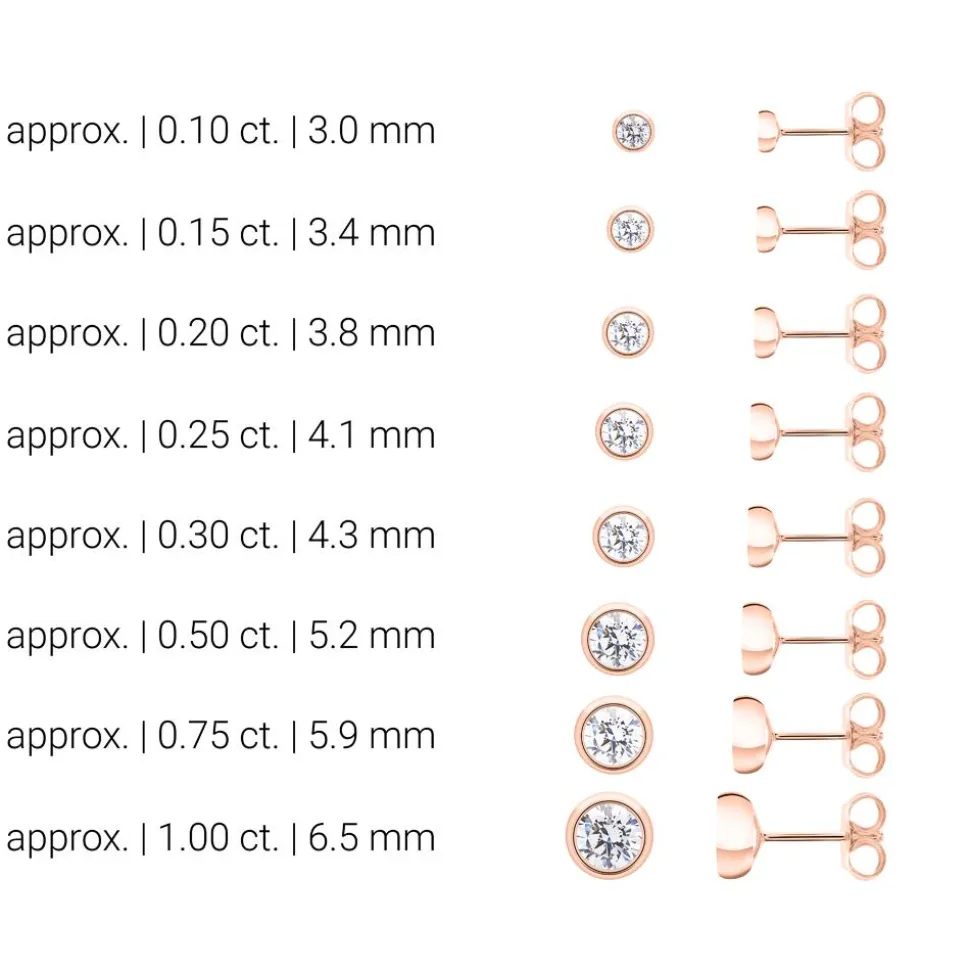 Diese Ohrstecker für Damen überzeugen mit ihrem stilvollen Design. Sie besitzen funkelnde lab-grown Diamanten, die von klassischen Zargenfassungen umschlossen werden. Genauso wie natürliche Diamanten verfügen die im Labor produzierten Diamanten über eine überragende Härte, eine hohe Qualität und ein zauberhaftes Funkeln. Der Vorteil solcher Diamanten liegt jedoch in ihrer umweltfreundlichen Produktion, die keinen Diamantabbau erfordert. Die lab-grown Diamanten stehen in verschiedenen Größen zur Verfügung. Alle wichtigen Eigenschaften der Diamanten sind zudem in dem Brilladia-Zertifikat sowie dem IGI-Zertifikat (für Diamanten ab ca. 0,30 ct.) aufgeführt. Die nachfolgende Tabelle enthält Informationen zur Qualität für das jeweilige Steingewicht der lab-grown Diamanten.