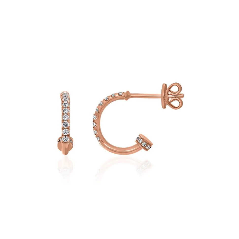 Diese Ohrstecker in Halb-Creolen-Optik begeistern mit ihren edlen Materialien und ihrer modern-zurückhaltenden Optik. Er ist wahlweise in 585er oder 750er Roségold erhältlich. Bitte die bevorzugte Legierung im Drop-down-Feld auswählen. Sie sind mehr als zur Hälfte und auch an den Abschlüssen mit laborgewachsenen Diamanten (beide zusammen: 36; ca. 0,28 ct.; Farbe: River bis Top Wesselton; Reinheit: very, very small inclusions bis very small inclusions) besetzt. Diese Diamanten wurden mithilfe eines speziellen Verfahrens hergestellt und besitzen eine hohe Qualität. Sie haben die gleichen Eigenschaften (Material, Härte, Funkeln) wie natürlich vorkommende Diamanten mit dem Vorteil, dass kein Diamantabbau notwendig ist. Der Ohrschmuck verfügt über ein Brilladia-Zertifikat.