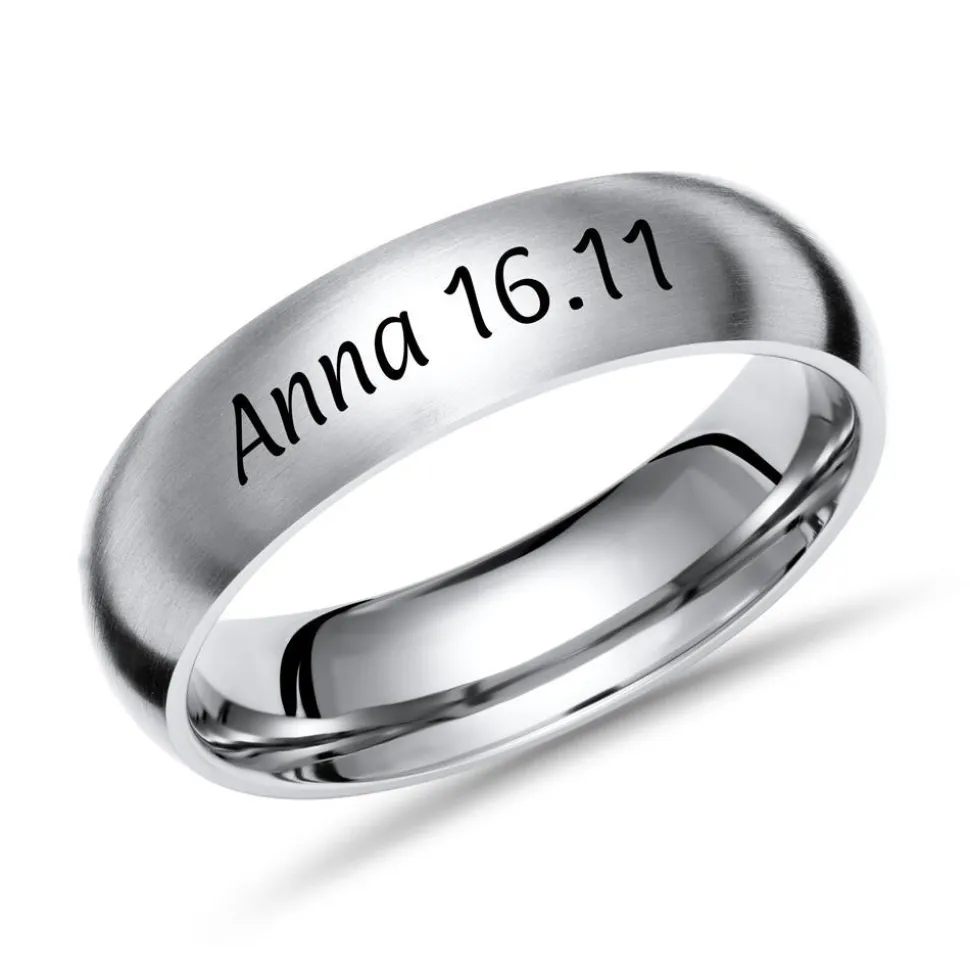 Hochwertiger Titanring der Marke Unique Titanium in 6mm Breite. Der Ring ist von Innen bombiert (abgerundet) und daher angenehm zu tragen. Der Ring kann kostenlos wahlweise von Innen oder Aussen mit einer Lasergravur versehen werden. Gegen Aufpreis ist auch eine beidseitige Gravur möglich.