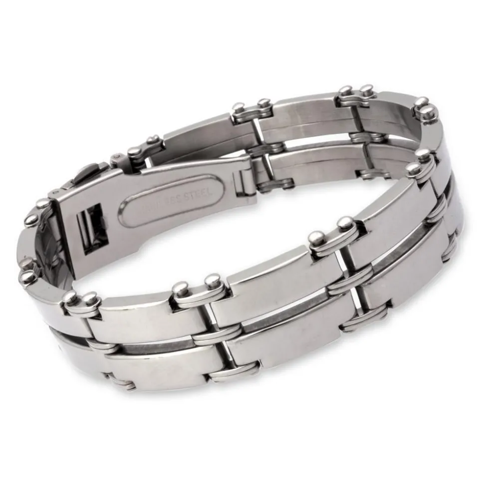Hochwertiges Edelstahlarmband in hochglanzpoliert und modernem Design. Das Armband einen praktischen Schnellverschluss.