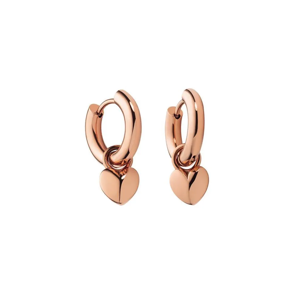 Romantische Eyecatcher – das sind diese Damen-Creolen aus rosévergoldetem Edelstahl (MARINIUM® Ocean Steel). Jede Creole wird von einem Herzanhänger geziert, welcher abgenommen werden kann. Somit ergeben sich gleich zwei Tragevarianten.