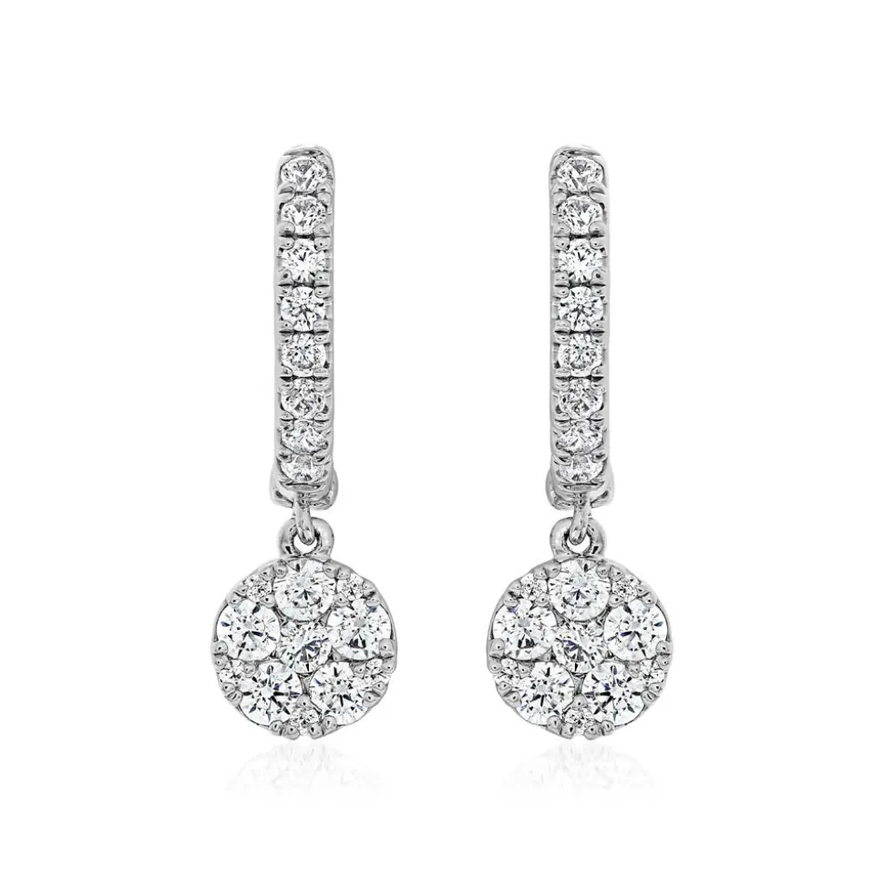 Elegante Klassiker – das sind diese Ohrringe für Damen. Sie sind wahlweise aus 585er oder 750er Weißgold oder 950er Platin gefertigt. Bitte das gewünschte Material im Drop-down-Feld wählen. Jede Creole wird jeweils im vorderen Teil und am Anhänger von laborgezüchteten Diamanten im Brillantschliff (insgesamt 38; ca. 0,61 ct.; Farbe: DEF; Reinheit: VVS-VS) geziert. Lab Grown Diamanten besitzen die gleiche Härte und das gleiche Feuer wie natürliche Diamanten und zeichnen sich außerdem durch ihre Umweltfreundlichkeit aus. Da durch den Herstellungsprozess im Labor der Diamantabbau entfällt, sind sie eine Alternative zu natürlichen Diamanten. Der Ohrschmuck verfügt über ein Brilladia-Zertifikat.