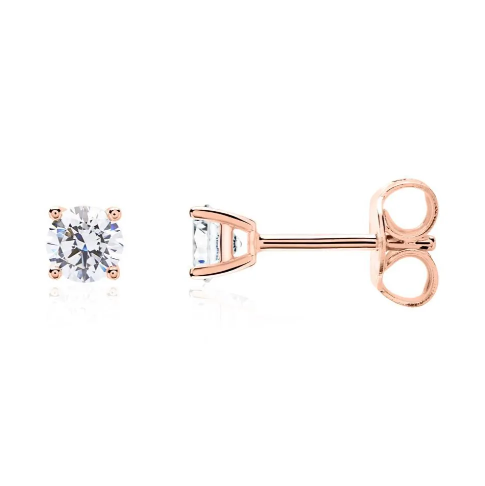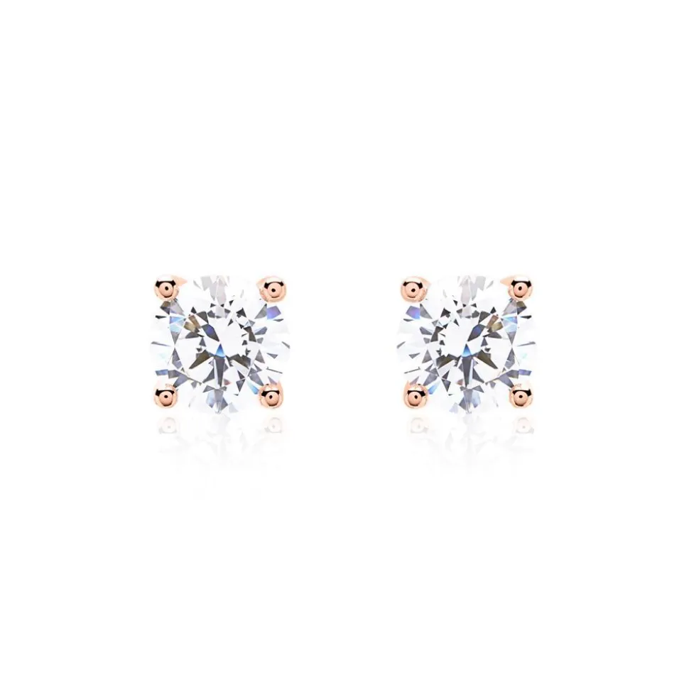 Diese Ohrstecker begeistern mit ihrem eleganten Aussehen. Sie besitzen jeweils einen lab-grown Diamanten, der von einer 4-Krappenfassung aus 14-karätigem Roségold gehalten wird. Der Diamant verfügt zudem über einen Brillantschliff und die Karatanzahl der beiden Diamanten ist auswählbar. Da lab-grown Diamanten mittels modernem Herstellungsverfahren im Labor entstehen, sind sie selbstverständlich ethisch einwandfrei und zudem noch umweltfreundlich. Ein Brilladia-Zertifikat gibt Auskunft über ihre Herkunft und Qualität und lab-grown Diamanten ab 0,30 ct. verfügen außerdem noch über ein Zertifikat des bekannten IGI-Instituts mit einer Auskunft über alle wertbestimmenden Eigenschaften. Die nachfolgende Tabelle enthält Informationen zur Qualität des jeweiligen Steingewichts der lab-grown Diamanten.