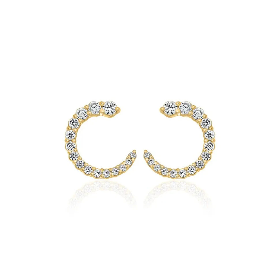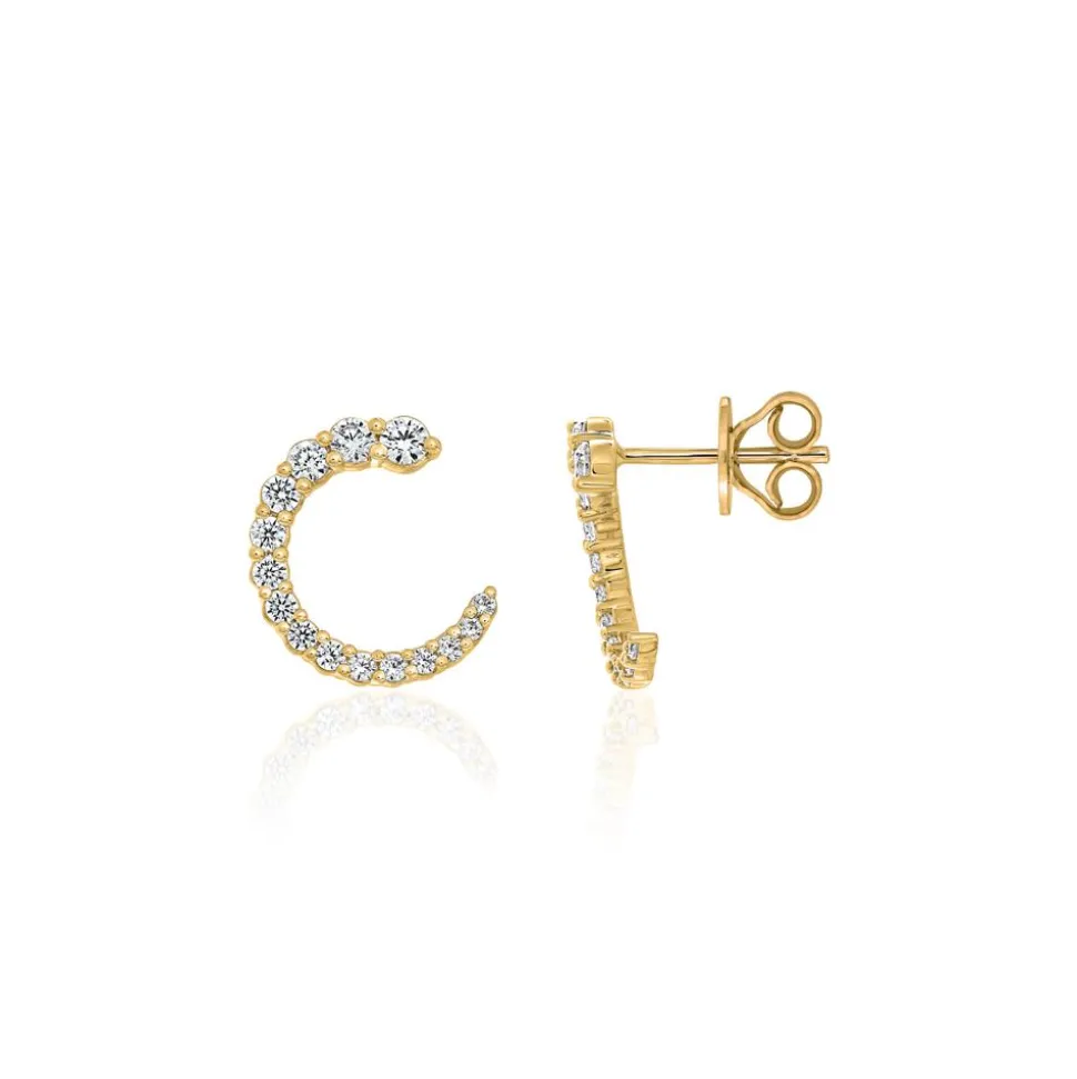 Stilvoll und modern zugleich – das sind diese Stecker, wahlweise aus 585er oder 750er Gelbgold. Bitte die gewünschte Legierung im Drop-down-Feld wählen. Sie besitzen jeweils die Form eines Cs oder einer Mondsichel. Jedes der Cs ist vollständig mit brillantgeschliffenen Diamanten (gesamt: 30; ca. 0,76 ct.), die im Labor entstanden sind, besetzt, die sich von oben nach unten hin verjüngen. Die Farbe dieser Lab Grown Diamanten fällt in die Kategorien „River“ bis „Top Wesselton“ und die Reinheit ist mit „very,very small inclusions“ bis „very small inclusions“ klassifiziert. Mittels hochtechnologischem Verfahren im Labor produziert, stehen diese Diamanten natürlich vorkommenden Diamanten in ihren wertbestimmenden Eigenschaften, wie der Qualität, der Härte und dem Funkeln, in nichts nach und sind zudem noch umweltfreundlicher. Der Ohrschmuck verfügt über ein Brilladia-Zertifikat.