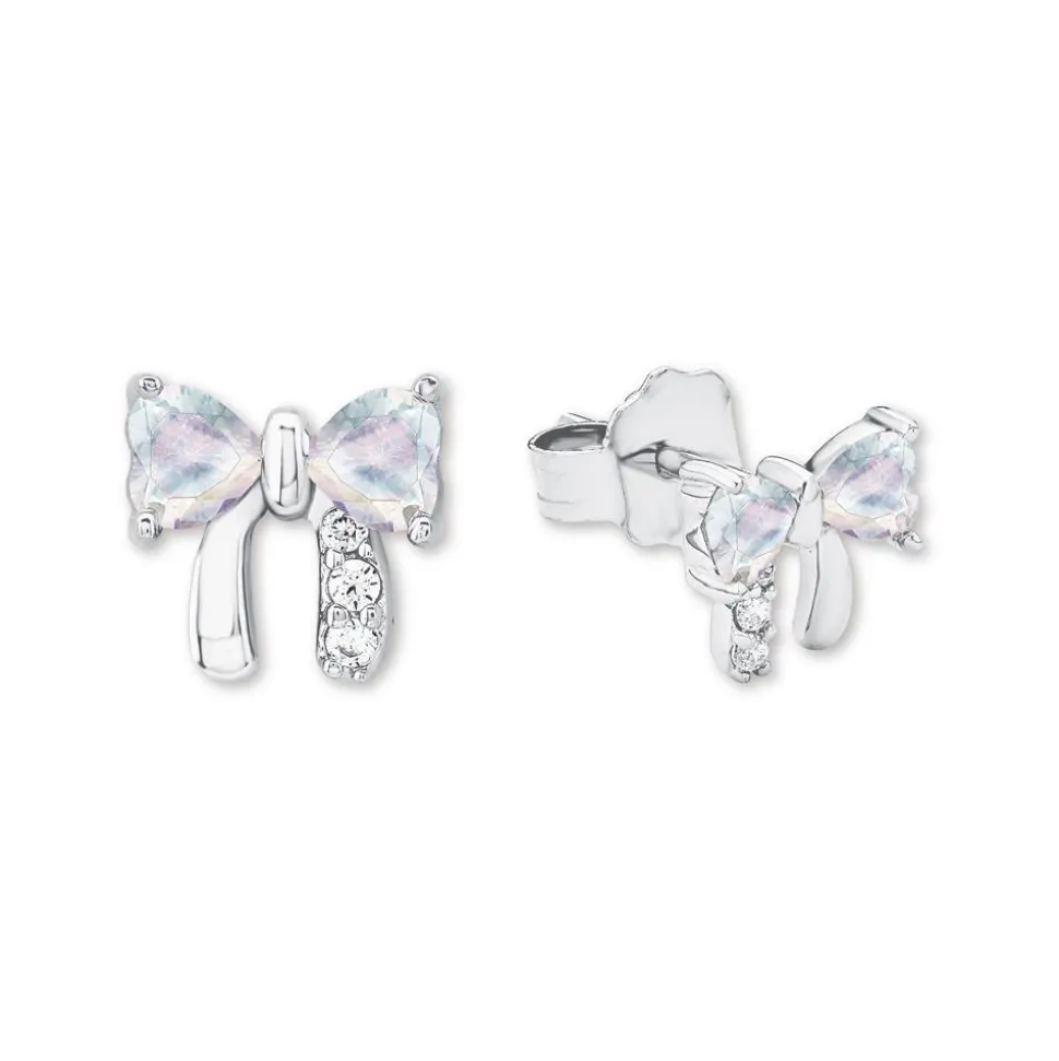 Diese edlen Ohrstecker aus Sterlingsilber bezaubern mit ihrem hinreißenden Funkeln. Sie besitzen jeweils die Form einer Schleife und werden von großen Schmuckkristallen mit Regenbogenschimmer und kleinen weißen Zirkoniasteinen geziert. Zum Schutz vor dem Anlaufen sind die Ohrstecker mit einer Rhodinierung versehen.