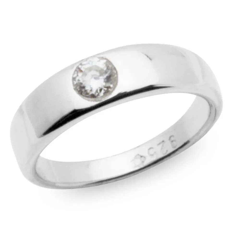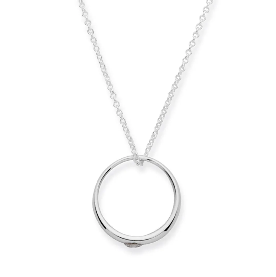 Für schlichte Schönheit steht diese Kette aus Sterlingsilber. Sie besteht aus einer Ankerkette und einem Taufring, der von einem funkelnden Zirkoniastein geziert wird.