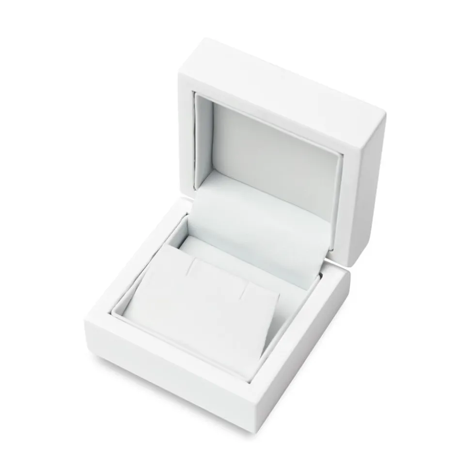 Die Premium Geschenkbox von The Jeweller ist für Ohrringe geeignet und glänzt in einem eleganten weiß. Das Holzetui kann auf Wunsch mit einer persönlichen Botschaft verziert werden.