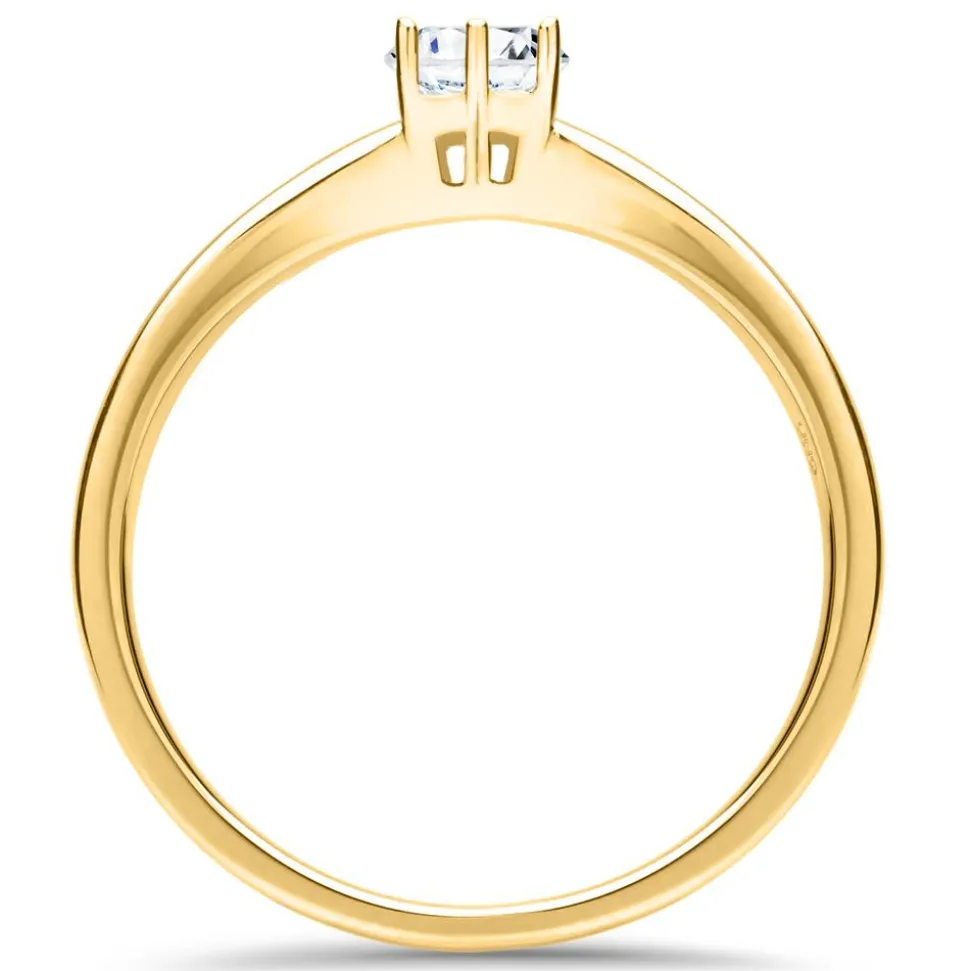 Ein absolut edler Klassiker – das ist dieser Verlobungsring aus 18-karätigem Gold. Exklusiver Blickfang ist der im Labor gezüchtete Brillant (ca. 0,25 ct.; Farbe D-F, Reinheit VVS-VS) in Krappenfassung. Unsere lab-grown Diamanten bestehen, wie natürliche Diamanten, aus Kohlenstoff und besitzen auch sonst alle Eigenschaften eines abgebauten Diamanten. Der Solitärring kann auf der Innenseite mit einem persönlichen Wunschtext versehen werden – unser Gravurservice macht es möglich. Die schmale Ringschiene sorgt für ein angenehmes Tragegefühl.