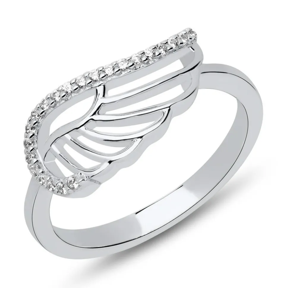 Flügel bzw. Engelsflügel sind Symbole für Schutz, Freiheit und versprühen als Designelemente eine jugendliche Leichtigkeit. Auch dieser bezaubernde Ring besitzt ein Flügeldesign. Er ist aus poliertem 925er Sterlingsilber gefertigt und der Flügel wird von Zirkoniasteinen geziert. Ihr reinweißes Funkeln harmoniert perfekt mit dem zeitlosen Silberglanz. Dank ihres bedeutungsvollen Designs eignet sich der Ring auch perfekt als Geschenk. Der Damenring ist dank der hochwertigen Rhodinierung vor dem Anlaufen geschützt.