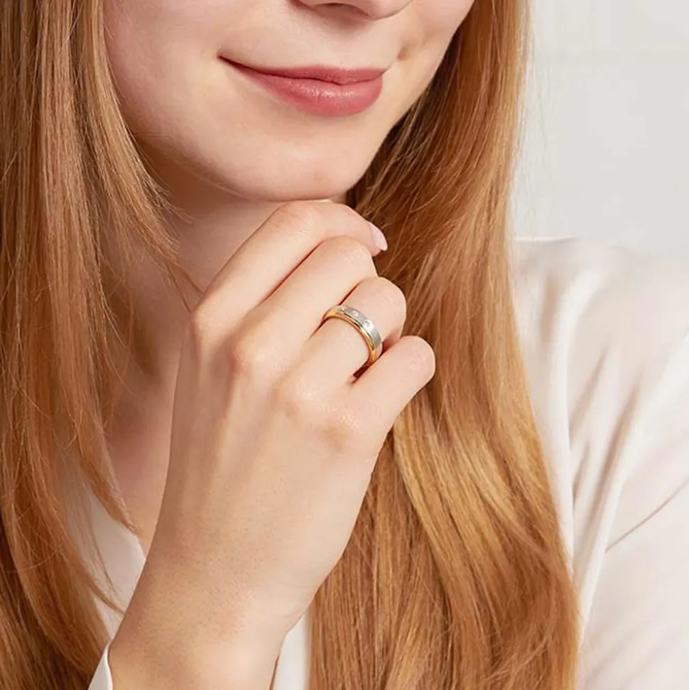 Dieser Damenring begeistert mit seiner zeitlosen Eleganz! Er ist aus mattiertem Sterlingsilber gefertigt und die vergoldete Außenkante besticht durch ihren ansprechenden Glanz. Durch die hochwertige Rhodinierung ist der Ring anlaufgeschützt. Vervollständigt wird das stilvolle Design von den drei weiß-funkelnden Zirkoniasteinen. Zudem besteht die Möglichkeit die Innenseite des Ringes individuell gravieren zu lassen.