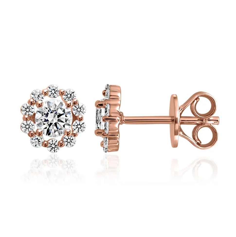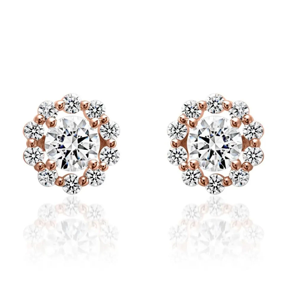 Eine wunderschöne Ohrschmuck-Kreation – das sind diese Ohrstecker aus modernem Roségold und lab-grown Diamanten. Das Design der Ohrstecker erinnert an Blüten und besteht aus jeweils einem zentralen lab-grown Diamanten (ca. 0,30 ct.) und 10 kleineren lab-grown Diamanten (ca. 0,16 ct. pro Stecker), die ihn umgeben. Alle Diamanten stammen aus dem Labor und zeichnen sich durch die Reinheit „very, very small inclusions“ bis „very small inclusions“ und die Farbe „River“ bis „Top Wesselton“ aus. Ihre Härte und Brillanz entspricht der von natürlichen Diamanten. Ein Brilladia FairJewel-Zertifikat gibt Auskunft über alle wertbestimmenden Merkmale der Diamanten. Über das Drop-down-Feld kann die gewünschte Legierung der Ohrstecker ausgesucht werden – entweder 585er oder 750er Roségold.