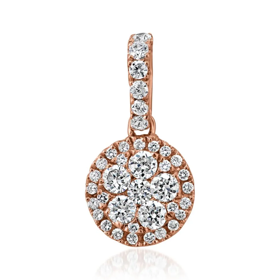 Dieser runde Halo-Anhänger für Damen setzt einen eleganten Akzent in jedem Outfit. Der Damenanhänger aus Roségold verfügt über einen Diamantbesatz aus 38 laborgezüchteten Diamanten. Diese weisen ein Gesamtgewicht von etwa 0,39 ct. auf und zeichnen sich durch eine hervorragende Qualität aus (Farbe: D-F, Reinheit: VVS-VS). Das Pavé in der Mitte des Anhängers wird von einem Kranz aus weiteren Labordiamanten umgeben. Auch die Öse ist mit lab-grown Diamanten versehen. Da der Anhänger in zwei Legierungen erhältlich ist – entweder in 14-karätigem oder in 18-karätigem Roségold – lässt sich die bevorzugte Legierung über das Drop-down-Feld auswählen. Er ist mit verschiedenen Ketten kombinierbar.