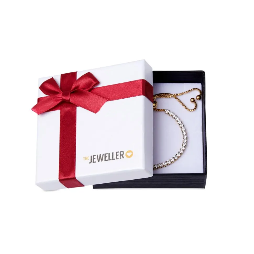 Traumhaft elegant – Das ist dieses Geschenketui für Schmuck mit dunkelroter Schleife. Es ist geeignet, um darin eine Kette, ein Armband oder Ohrschmuck zu verschenken und aufzubewahren – Das weiße Inlay aus Schaumstoff, welches mit weißem Samt überzogen ist, hält den Schmuck sicher und schützt ihn vor möglichen Kratzern. Das Etui ist aus stabilem Karton gefertigt, wobei der weiße Deckel mit einem goldenen Schimmer überzogen und die Unterseite in dezentem Anthrazit gehalten ist.