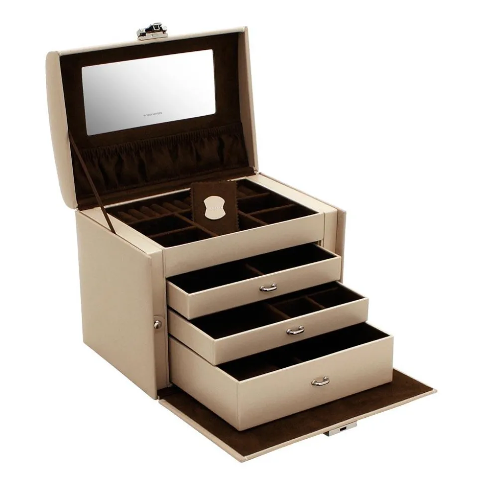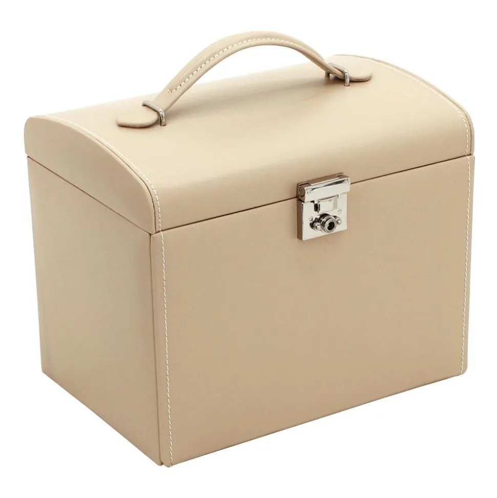 Elegantes Raumwunder – Schmuckkoffer aus hellbeigem Leder