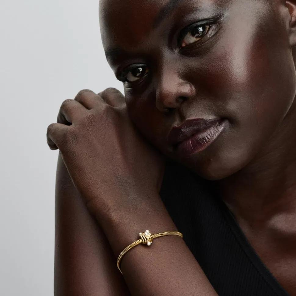 Verspielt – das ist dieser Slide-Charm für Damen. Er besteht aus einer Metalllegierung mit goldfarbener IP-Beschichtung und beeindruckt mit seinem fantasievollen Design. Zudem ist er mit lackierten Kunstperlen besetzt, die alle Blicke auf sich ziehen. Es handelt sich hierbei um einen Charm ohne inneres Gewinde, der nur mit Moments-Accessoires kombiniert werden kann.
