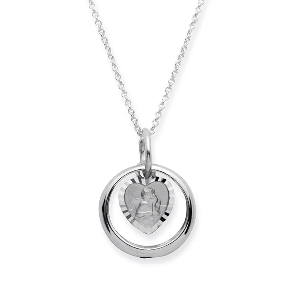 Diese Kette aus 925er Silber ist ein traumhaftes Geschenk für einen besonderen Anlass. Die Ankerkette wird von einem Taufring und einem Engelsanhänger in Herzform geziert. Auf dem Taufring befindet sich ein funkelnder Saphir.