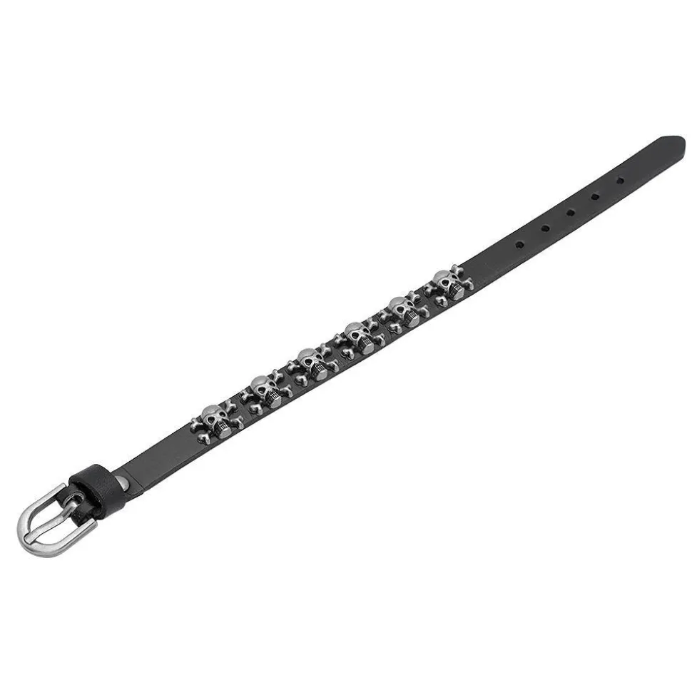 Markant-modern – Armband aus schwarzem Leder mit Totenköpfen