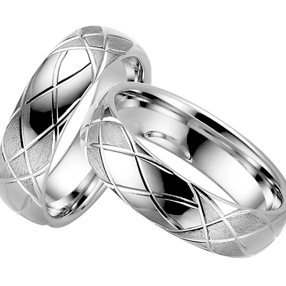 Beeindruckend – das sind diese Trauringe aus der Kollektion „Elements 2“. Ihre Ringschienen aus Weißgold sind mit zahlreichen sich kreuzenden Glanzrillen versehen und besitzen teils polierte und teils matt-gebürstete Partien. Ein hoher Tragekomfort wird durch die innere Abrundung der Ringe gewährleistet. Auf Wunsch können unsere erfahrenen Graveure noch eine individuelle Innengravur hinzufügen.
