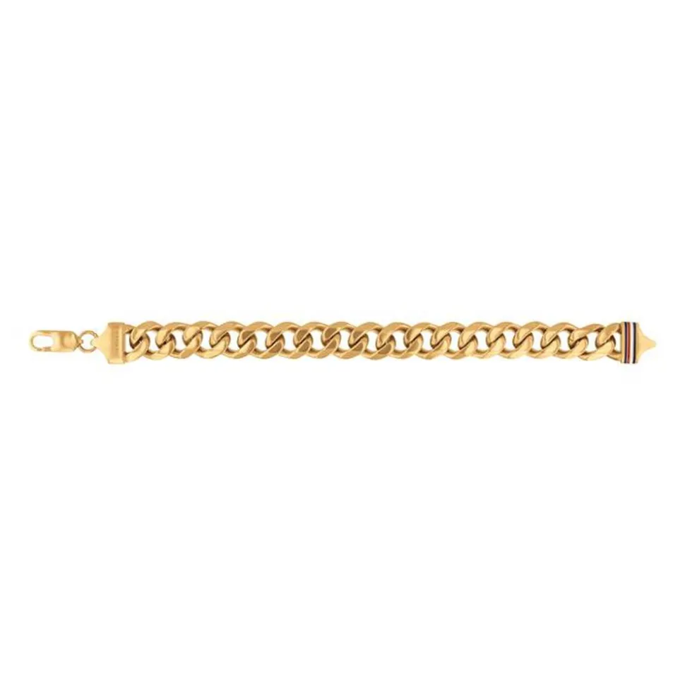 Dieses Panzerarmband begeistert mit seinem maskulinen Design und der wirkungsvollen Größe. Es besteht aus vergoldetem Edelstahl und ist an der Schließe mit Emaille in den typischen Tommy Hilfiger Farben versehen. Geschlossen wird das Armband mit einem klassischen Karabiner.