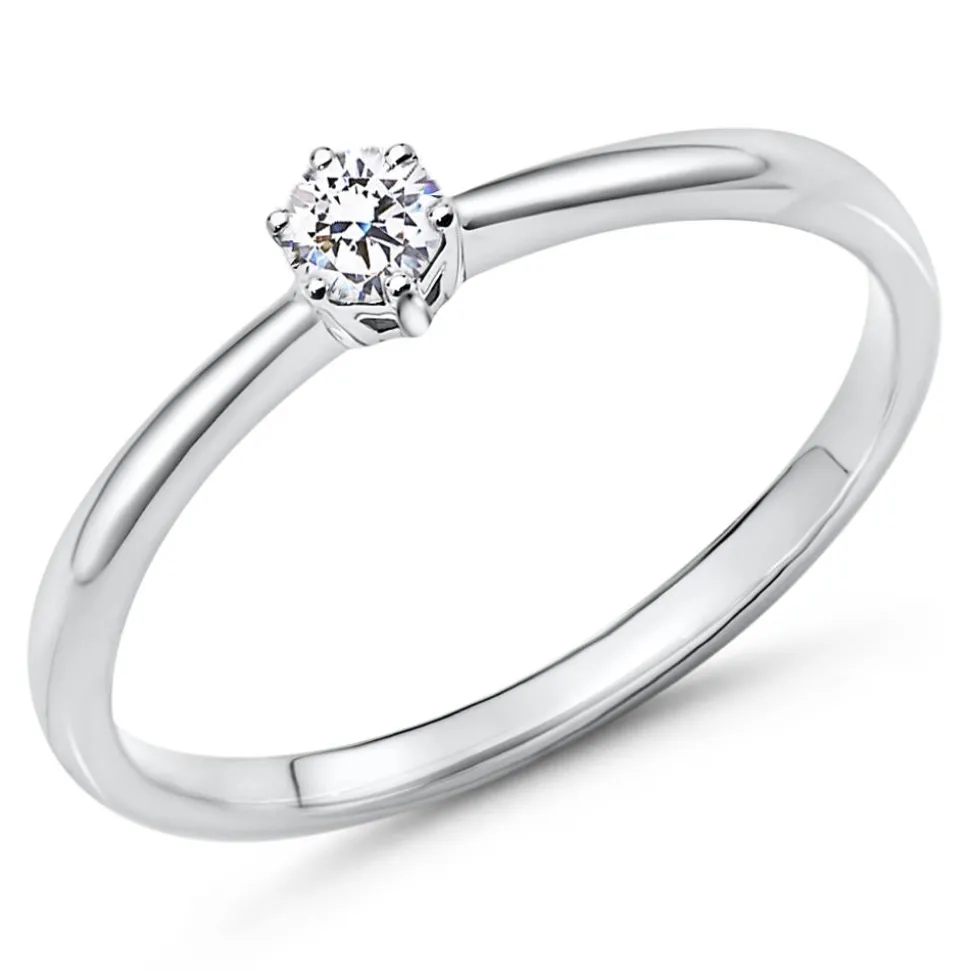Die perfekte Kombination aus stilvollem Design, exklusiven Materialien und Innovation – das ist dieser Ring! Er besteht aus 750er Weißgold und ist mit einem lab-grown Diamant (ca. 0,15 ct.) in Krappenfassung besetzt. Hierbei handelt es sich um einen echten Diamanten mit der gleichen chemischen Zusammensetzung wie ein abgebauter Diamant. Dieses neuartige Herstellungsverfahren hat zudem preisliche, ökologische und ethische Vorteile. Die Farbe des Steins ist klassifiziert als Feines Weiß (Top Wesselton) und die Reinheit fällt in die Kategorie SI (small inclusions). Die Innenseite des Solitärringes kann mit einer liebevollen Botschaft graviert werden.