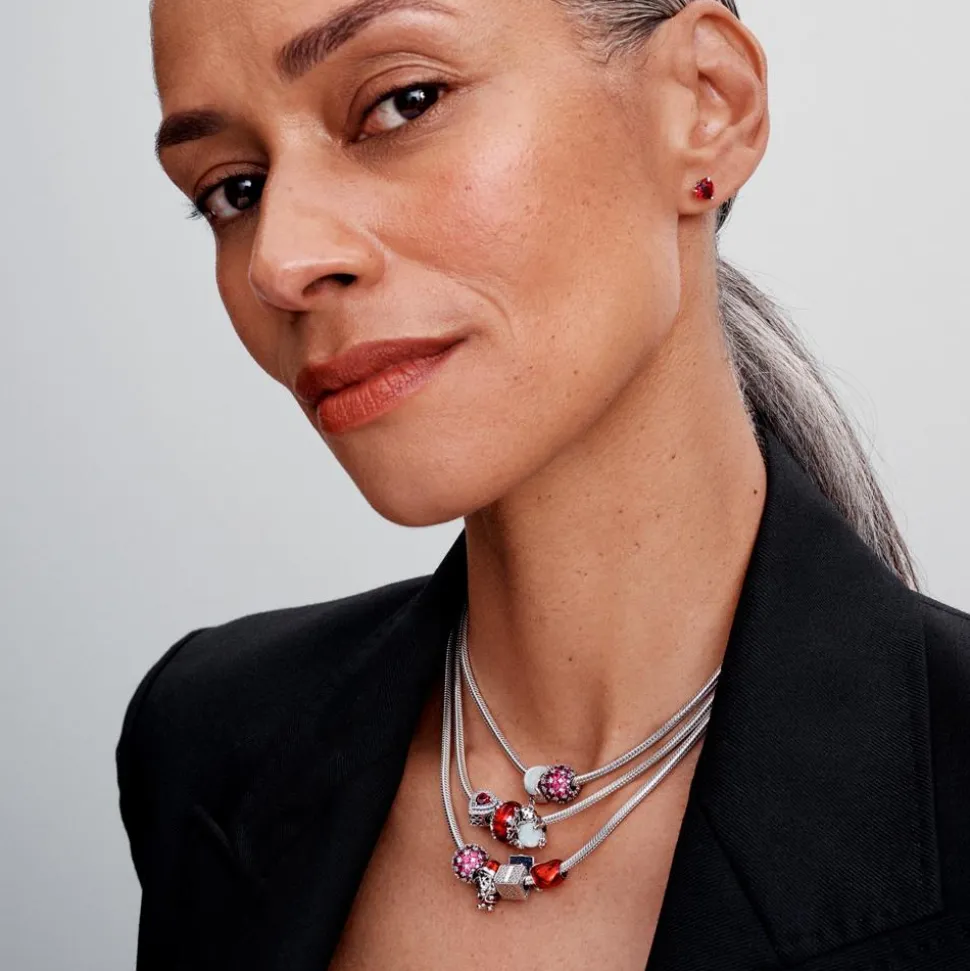 Wunderschön – das ist dieser Damen-Charm aus recyceltem Sterlingsilber. Der Kern ist dabei von rotem Glas umgeben, das für einen weihnachtlichen Effekt sorgt. An beiden Seiten des Charms sind zudem weihnachtliche Motive wie zum Beispiel Lebkuchenmänner, Zuckerstangenherzen und Weihnachtsbäume erkennbar. Der Charm ist mit Moments-Schmuckstücken kompatibel.