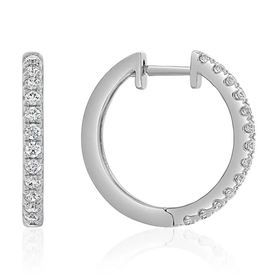 Diese Creolen sind traumhaft elegant! Im Drop-down-Feld kann die gewünschte Legierung gewählt werden: entweder 585er oder 750er Weißgold oder 950er Platin. Jede Creole ist auf der Vorderseite mit Lab Grown Diamanten im Brillantschliff (beide insgesamt 26; ca. 0,50 ct.) besetzt. Die Farbe dieser im Labor hergestellten Diamanten fällt in die Kategorie „River“ bis „Top Wesselton“ und die Reinheit ist mit „very,very small inclusions“ bis „very small inclusions“ klassifiziert. Sie haben die gleichen Eigenschaften (Material, Härte, Funkeln) wie natürlich vorkommende Diamanten mit dem Vorteil, dass kein Diamantabbau notwendig ist. Der Ohrschmuck verfügt über ein Brilladia-Zertifikat.