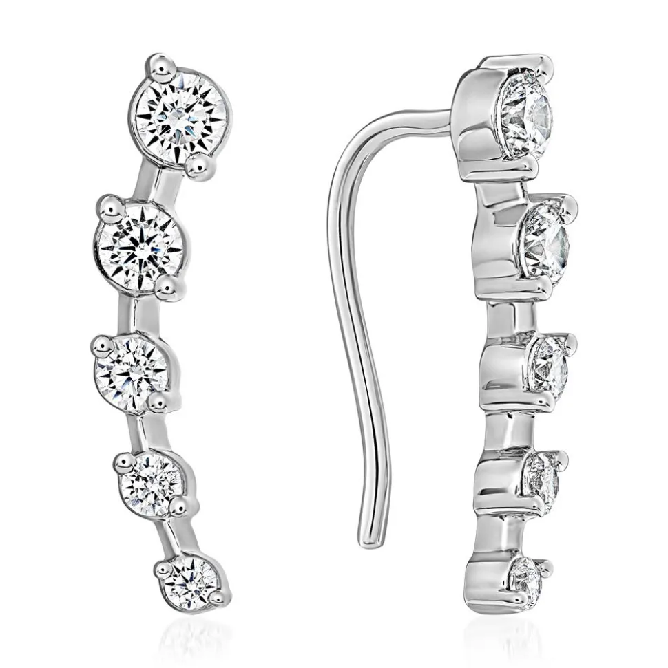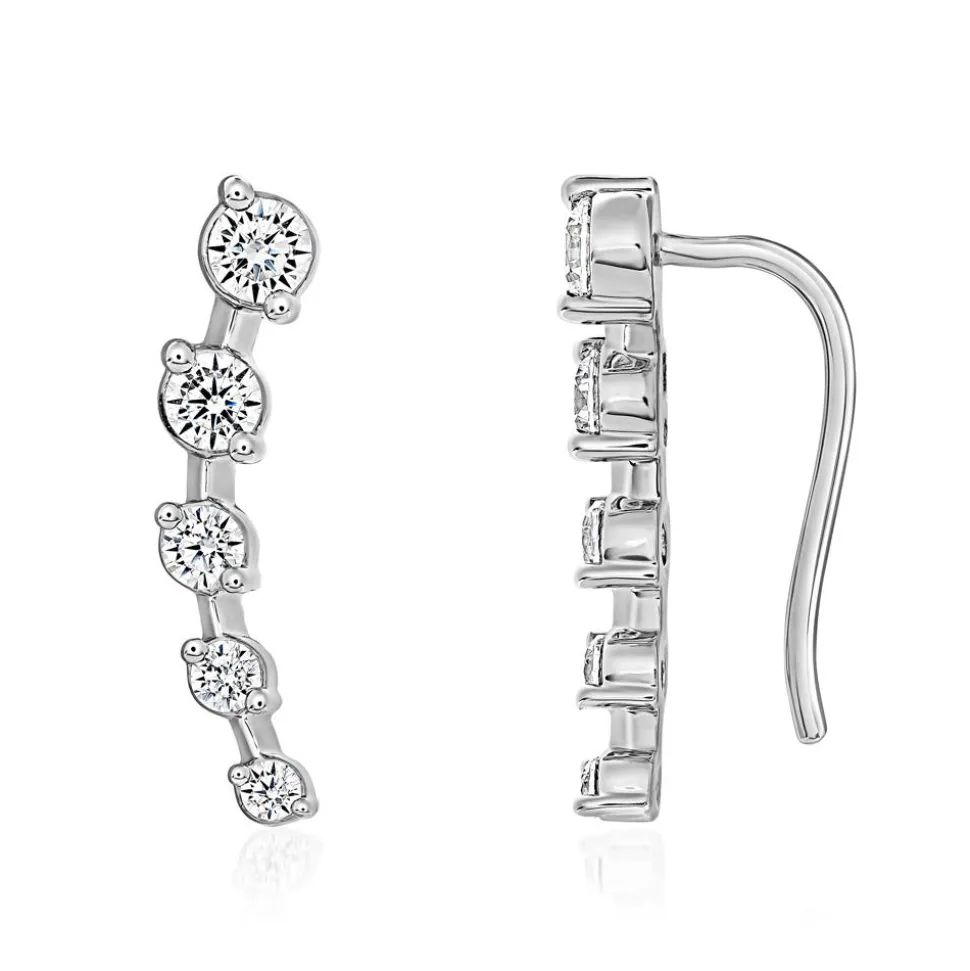 Pure Eleganz – das strahlen diese Ohrhänger für Damen aus. Im Drop-down-Feld kann die gewünschte Legierung gewählt werden: entweder 585er oder 750er Weißgold oder 950er Platin. Die geschwungenen Ohrhänger werden von insgesamt 10 brillantgeschliffenen Diamanten (ca. 0,57 ct.), die im Labor enttanden sind, geziert. Die größeren Diamanten befinden sich näher am Ohr und nach unten hin verjüngen sie sich. Die Farbe der Lab Grown Diamanten fällt in die Kategorie D-F und die Reinheit ist mit VVS-VS klassifiziert. Diese bestehen, wie natürliche Diamanten, aus Kohlenstoff und besitzen auch sonst alle Eigenschaften eines abgebauten Diamanten, sind aber ressourcenschonender. Der Ohrschmuck verfügt über ein Brilladia-Zertifikat.
