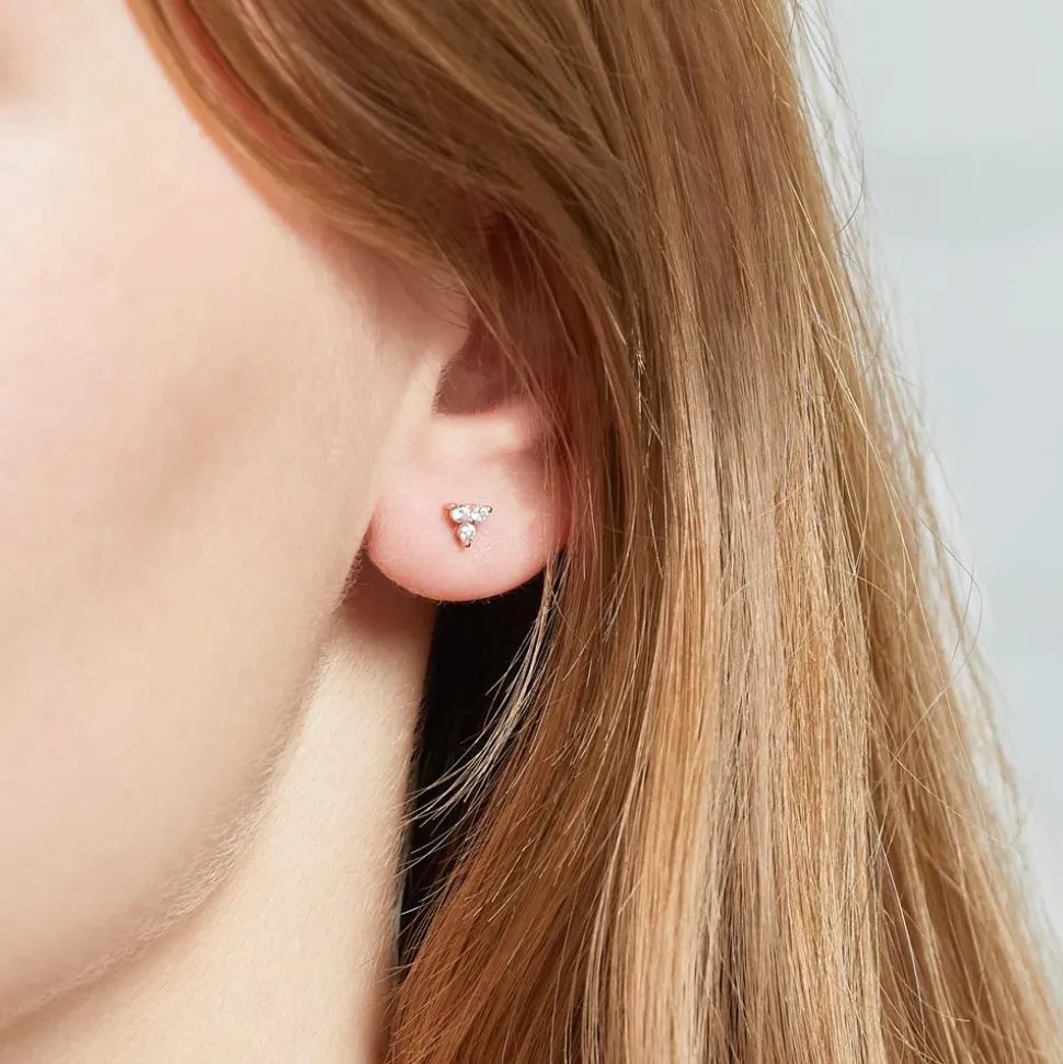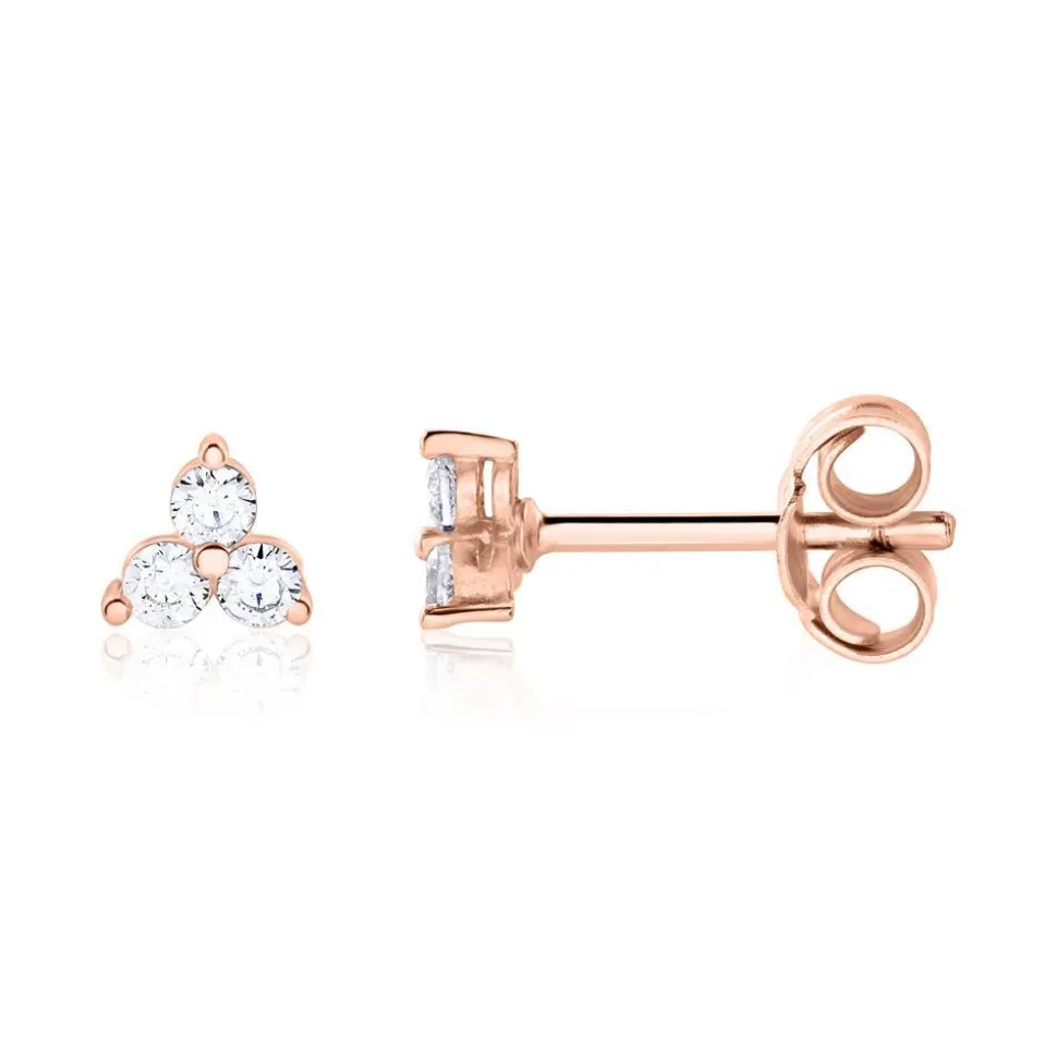 Minimalistisch und trendig – das sind diese Damen-Ohrstecker aus rosévergoldetem Sterlingsilber mit weißen Zirkonia, die im Dreieck angeordnet sind.