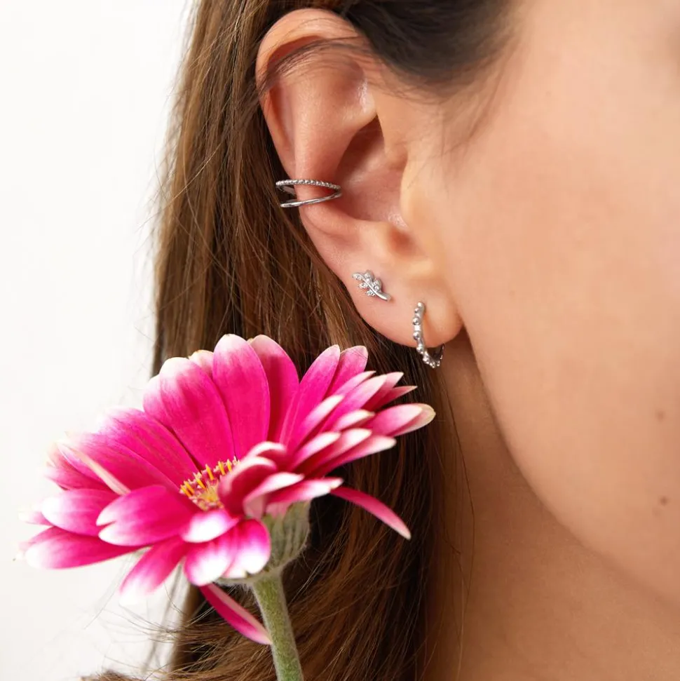 Lässig und modern – das sind diese Ohrklemmen für Damen. Sie bestehen aus Sterlingsilber (rhodiniert) und sind zweireihig. Jede Ohrklemme besteht aus einem glatten Ring und einem im Dot-Design. Sie werden geklemmt, d. h., sie benötigen keine Ohrlöcher und werden paarweise verkauft.